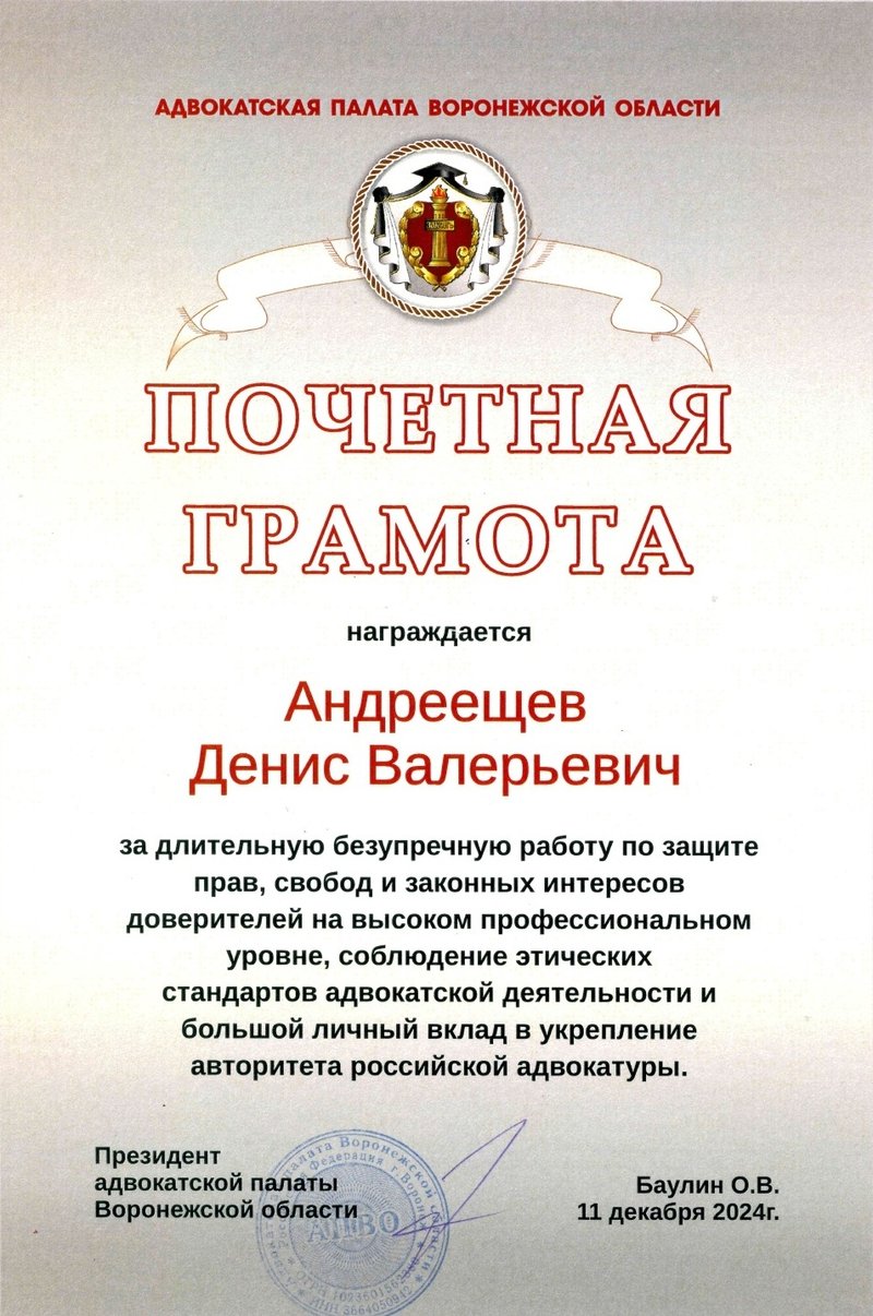 Член Адвокатской палаты Воронежской области. Более 10 лет практики в сфере семейного права.